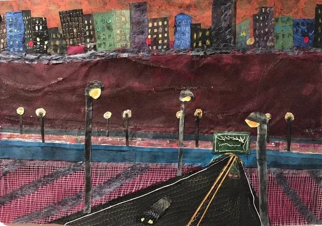 For the past several years, the work has been on paper, and made primarily using collage and mixed media (inks, colored pencils, pastels and gouache). I use a variety of papers including wallpapers and repurposed old drawings and monotypes. The finished drawings reflect the art elements that interest me most: pattern, repetition, texture, and color. The drawings are built up layer by layer, allowing some of the under layers to come through, often creating surprising results.